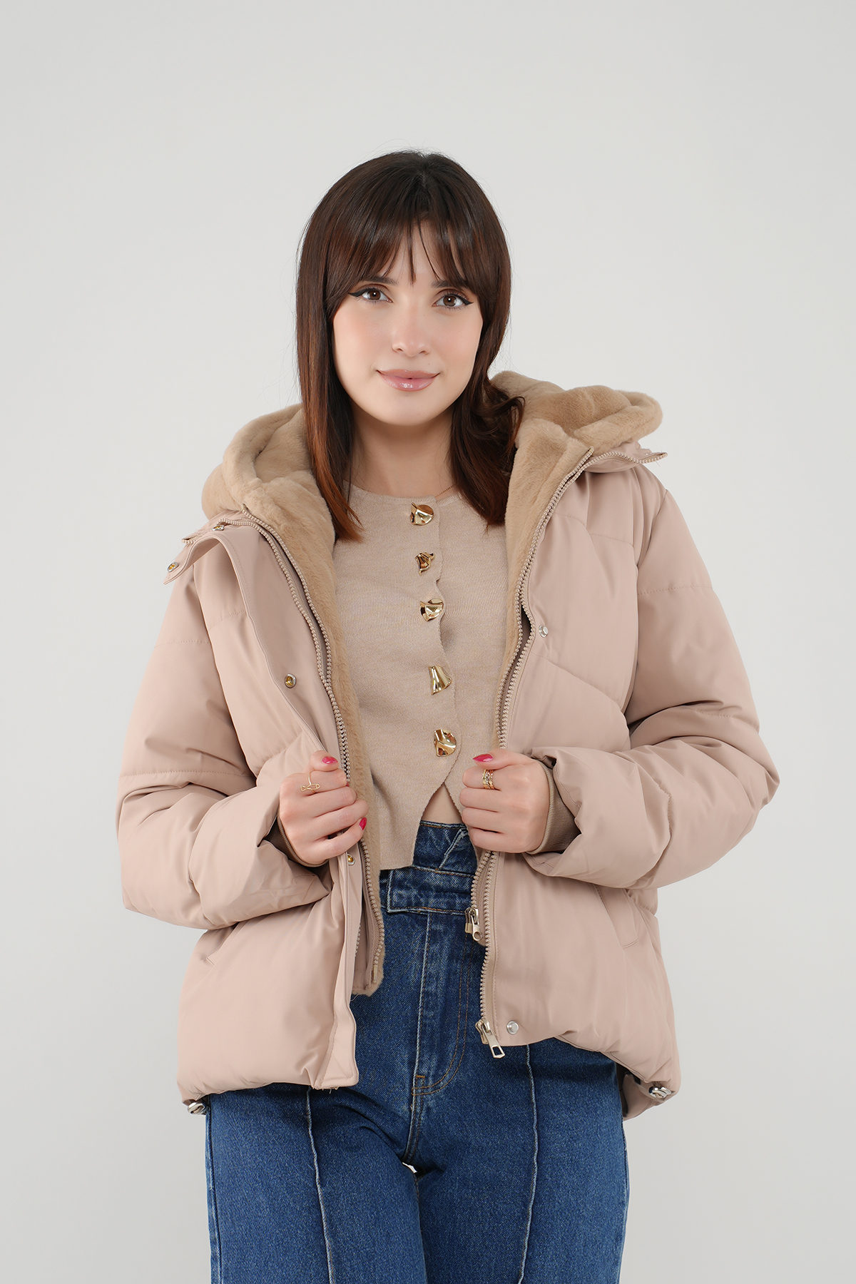 Apportez une touche de féminité et de confort à votre quotidien avec notre Doudoune avec capuche forure.