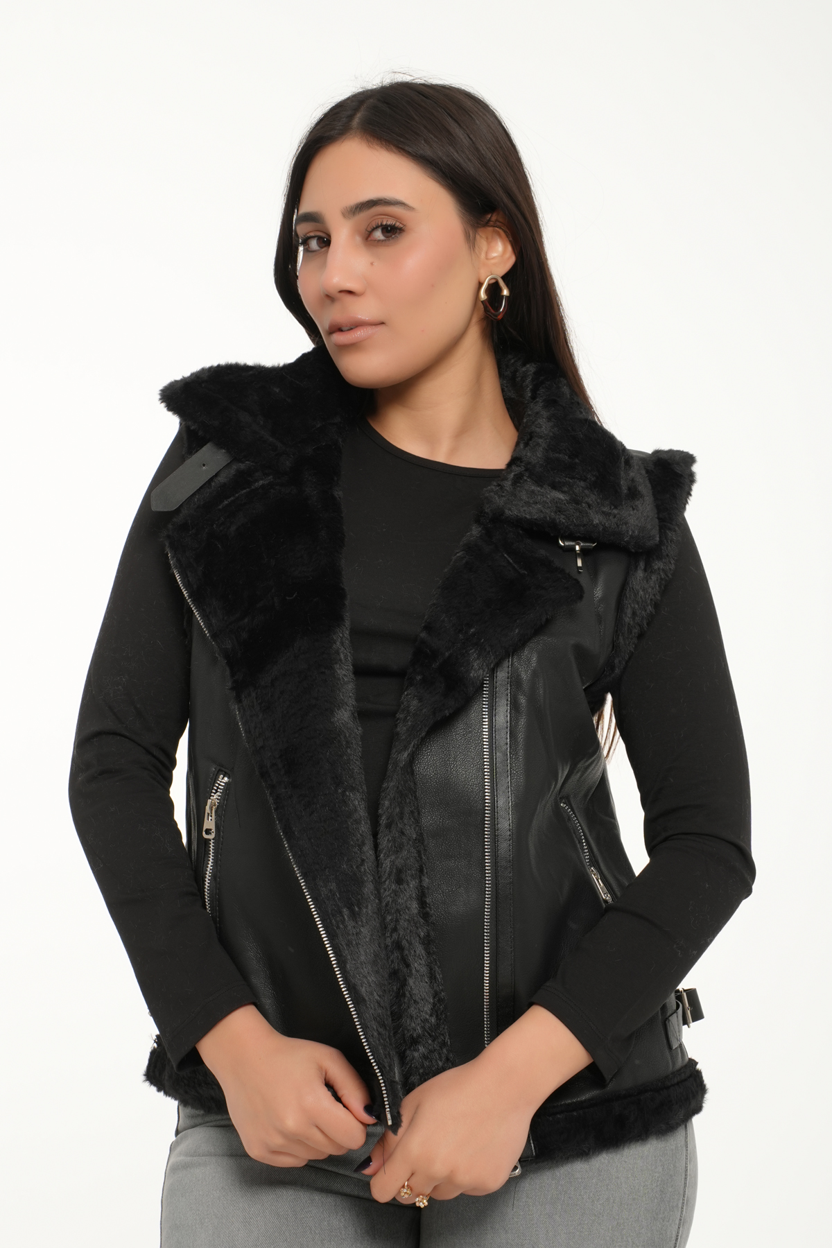 Adoptez un look tendance et affirmé avec ce Jacket en simili cuir, sublimé par une doublure et un col en fausse fourrure ultra douce.