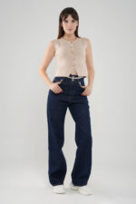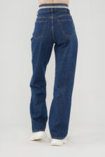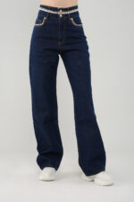 Ce jean taille haute revisite le denim classique avec une touche d’élégance grâce à ses finitions brodées contrastantes sur la taille et les poches. Sa coupe droite légèrement évasée met en valeur la silhouette tout en offrant un confort optimal. Le denim lui confère un look intemporel, parfait pour un style chic et décontracté.