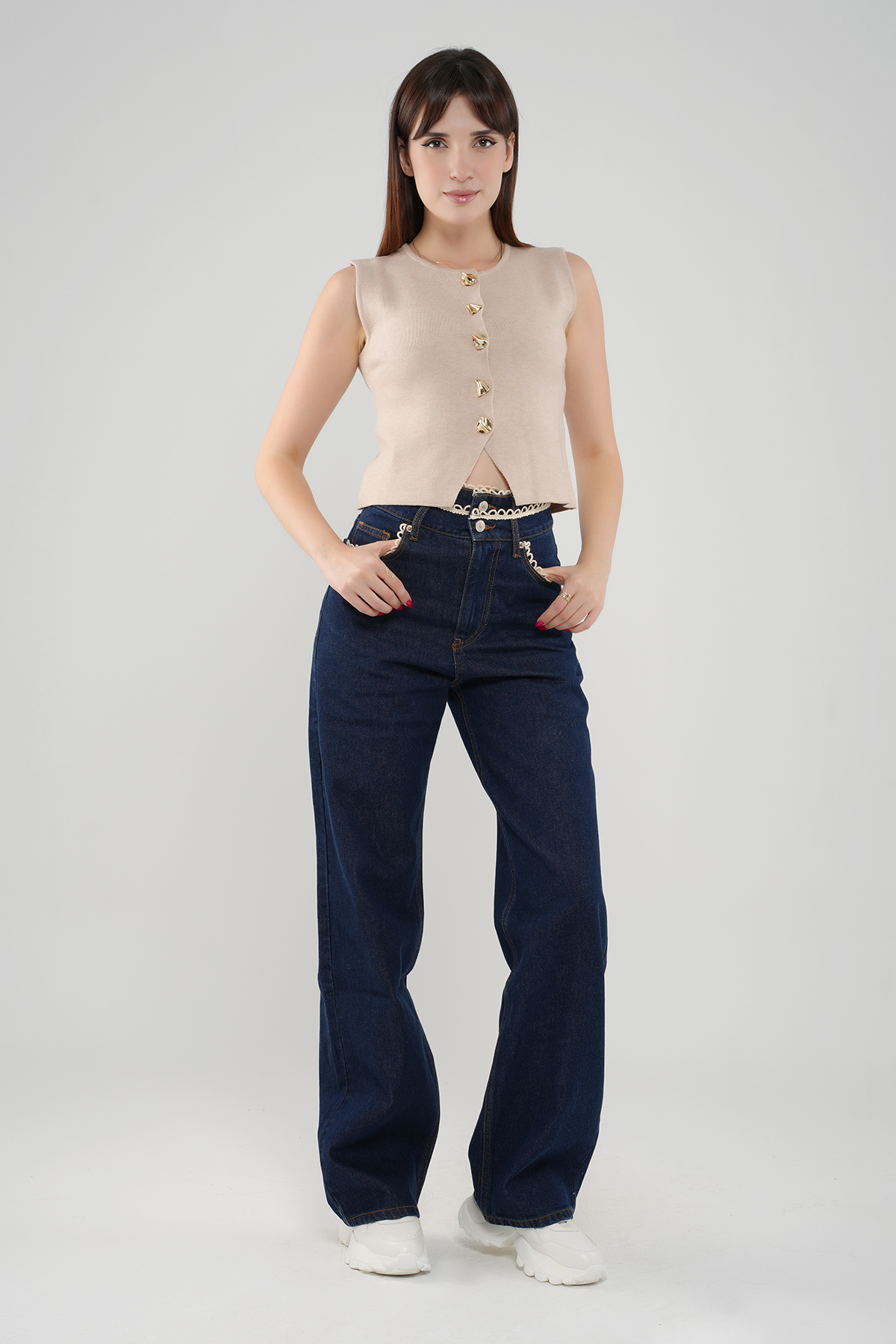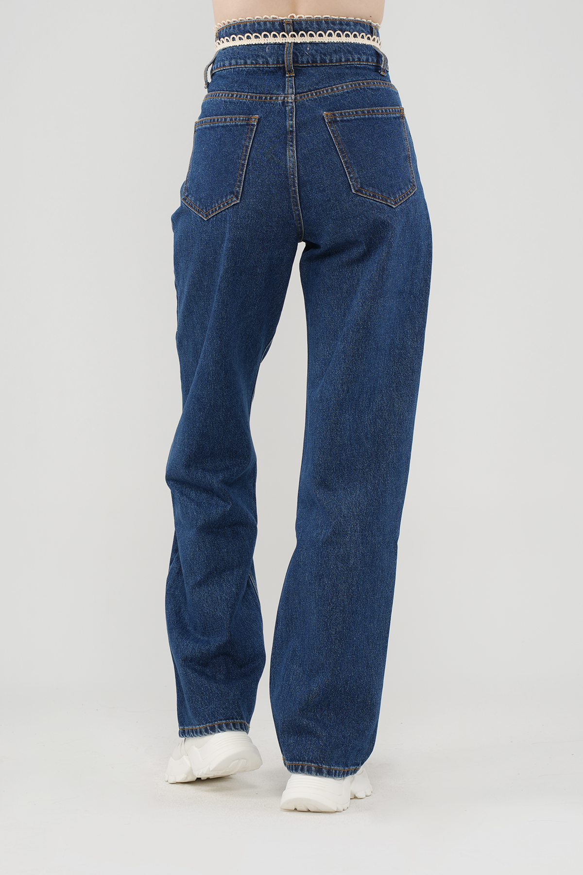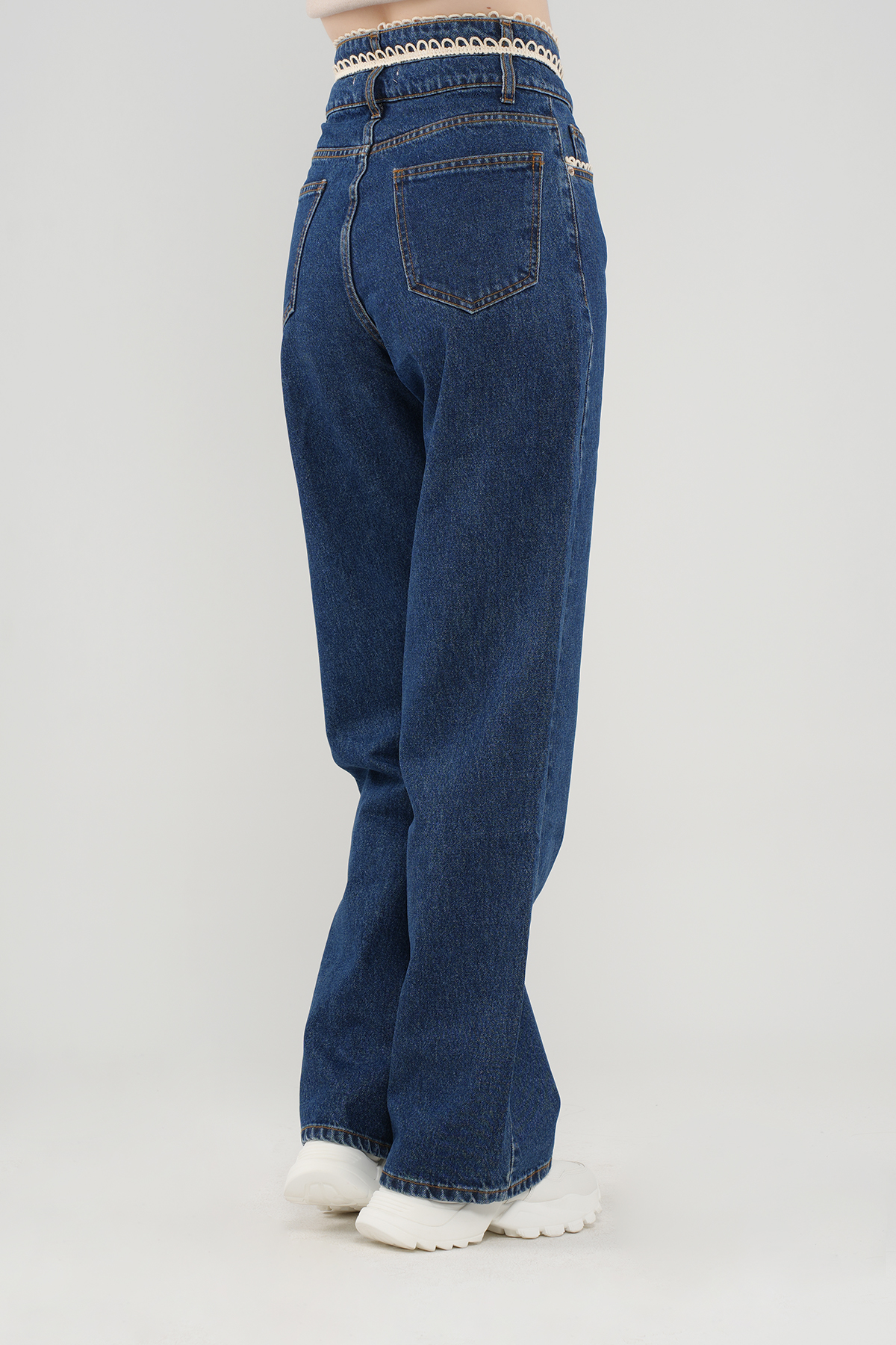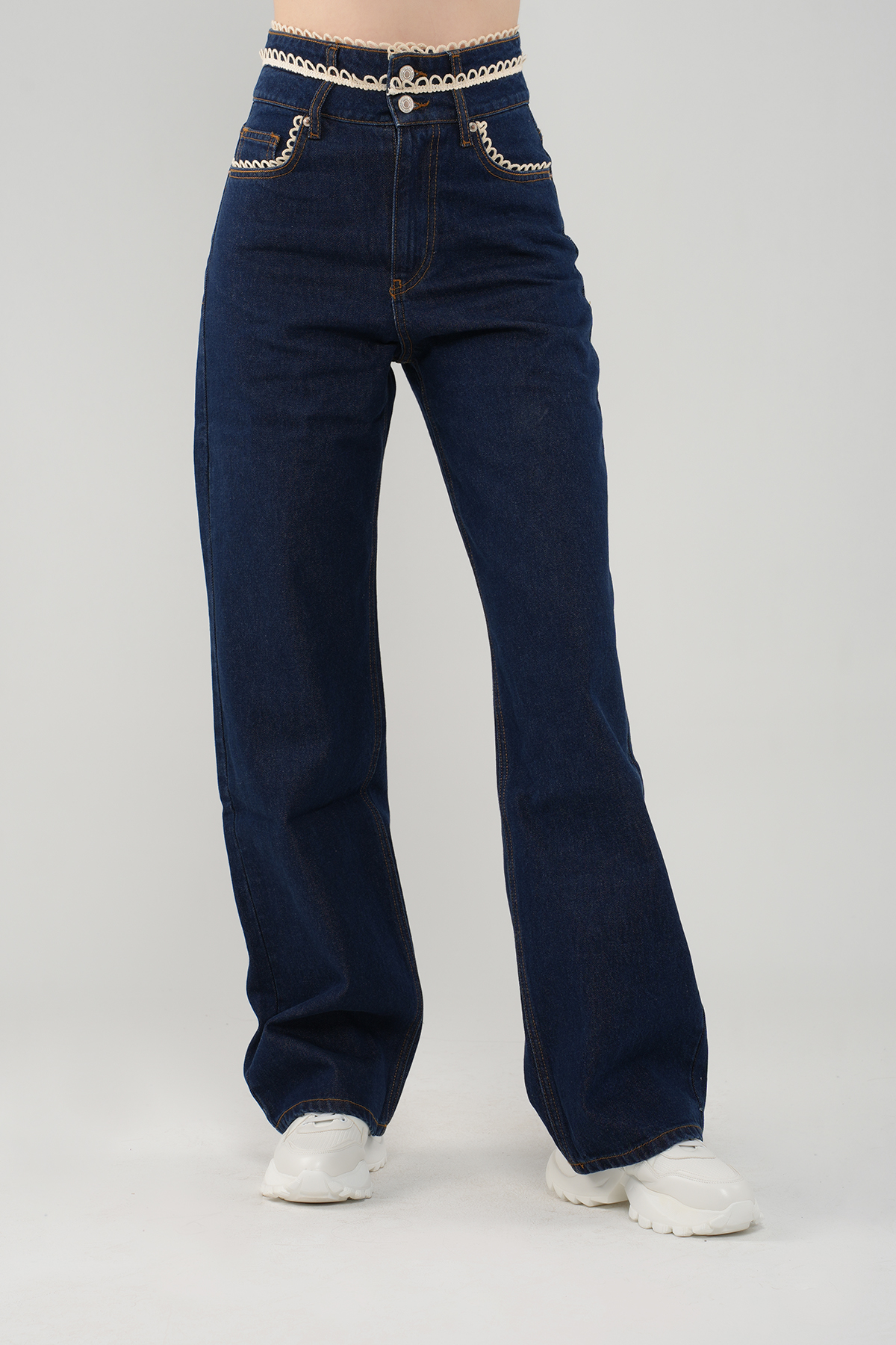 Apportez une touche de féminité et de confort à votre quotidien avec notre Jean à détails brodés.