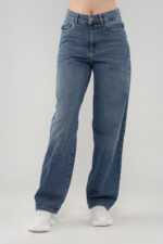 Adoptez un style décontracté et intemporel avec ce jean droit taille haute en denim bleu classique. Sa coupe droite allonge la silhouette tout en offrant un confort optimal au quotidien. Doté de poches et d’une fermeture à bouton et zip, il s’associe facilement avec un t-shirt basique ou un pull over size pour un look moderne et sans effort.