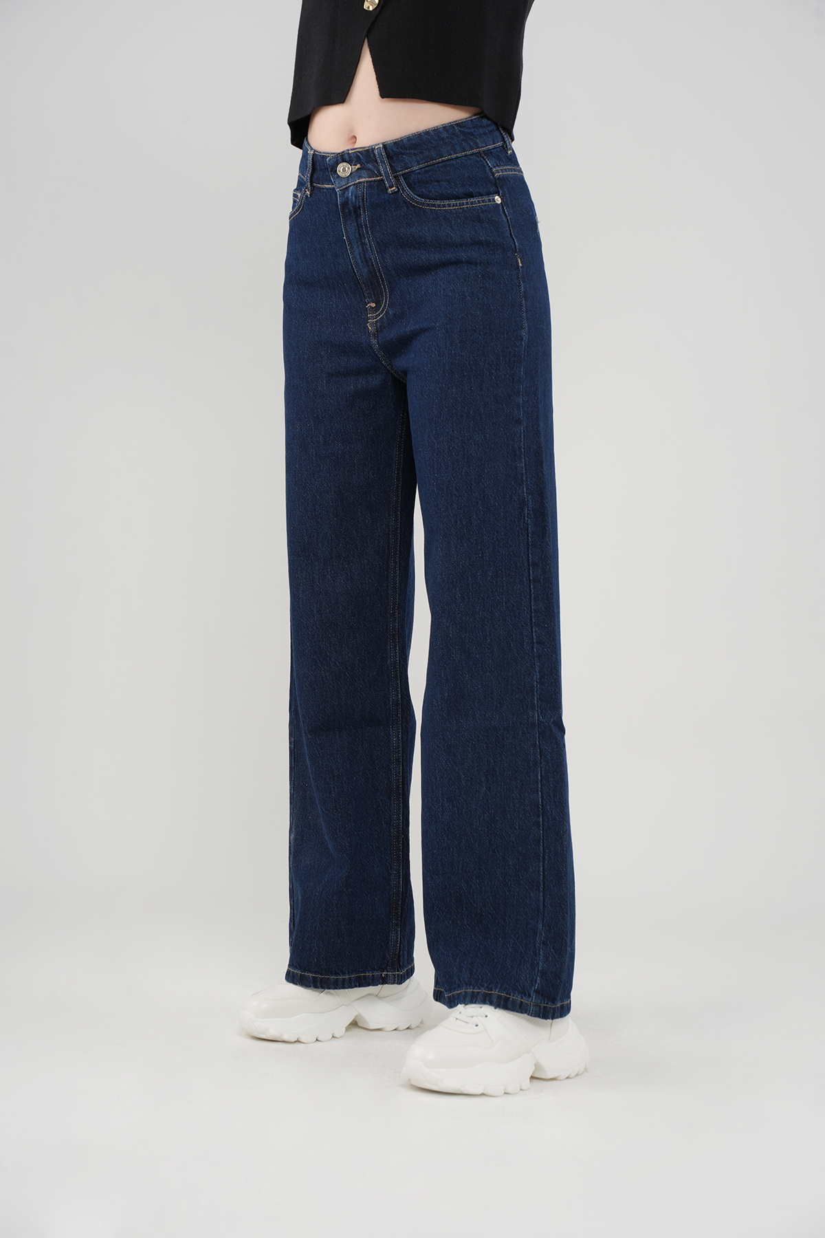 Ce jean droit taille haute est un indispensable du dressing. Confectionné dans un denim bleu foncé de qualité, il allie confort et style pour un look à la fois décontracté et élégant. Sa coupe droite allonge la silhouette et s’adapte à toutes les morphologies.