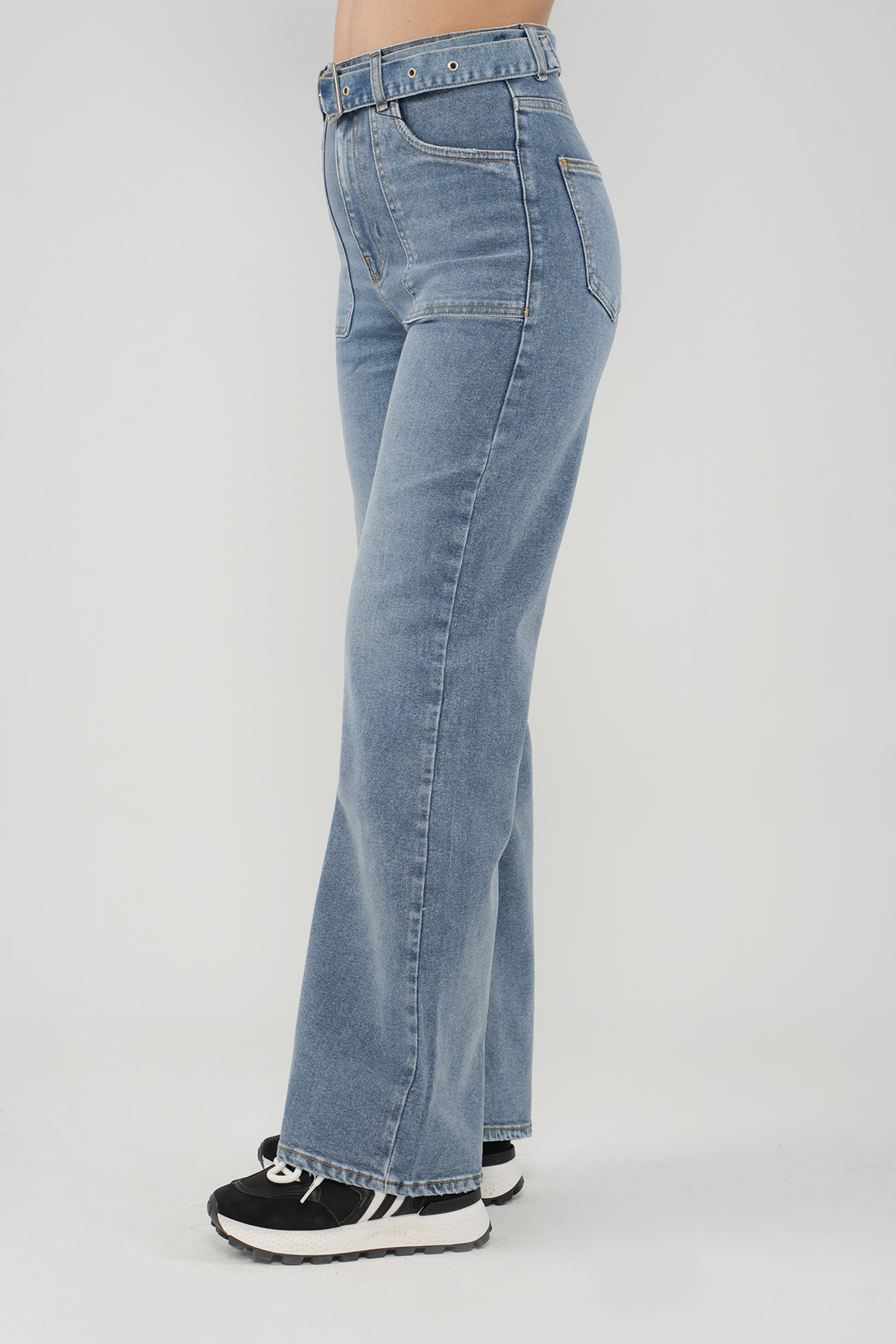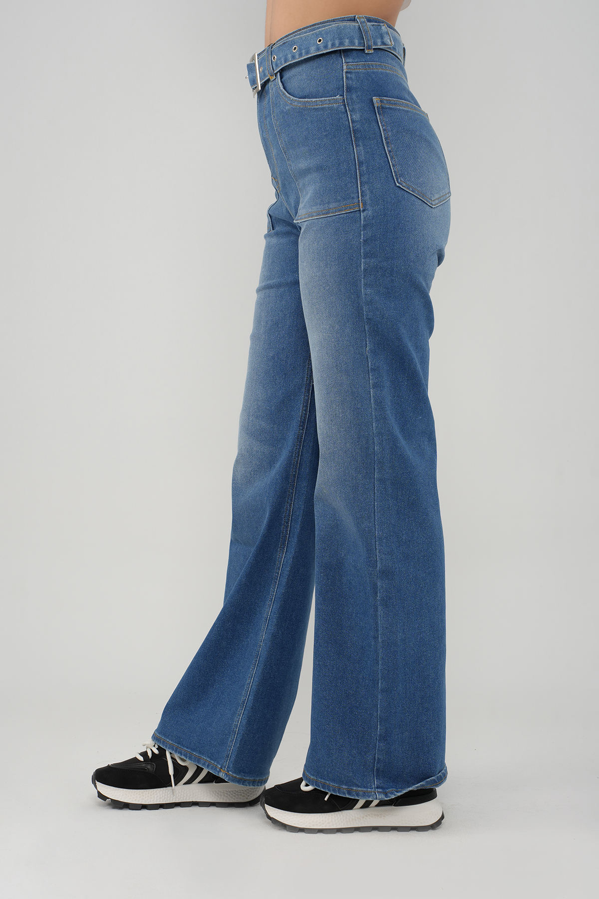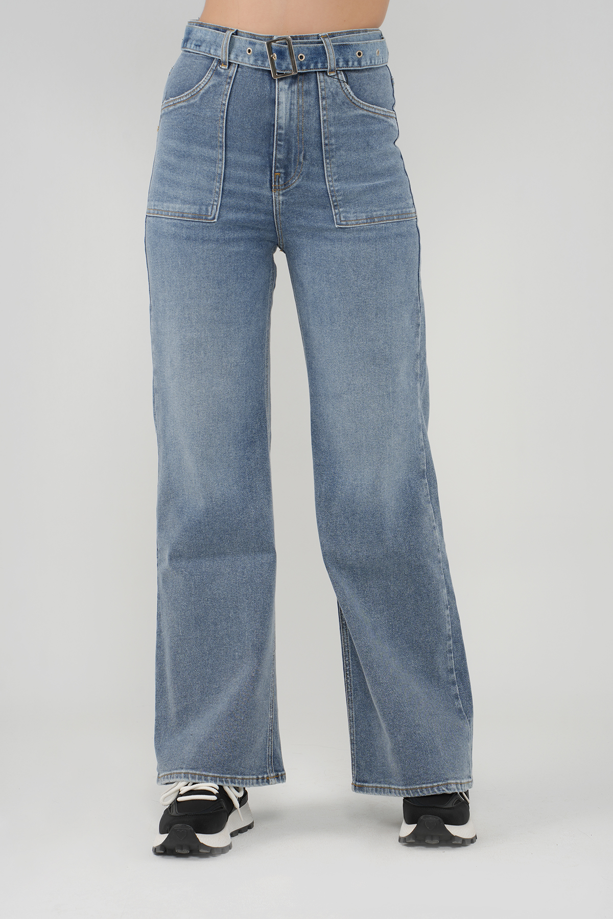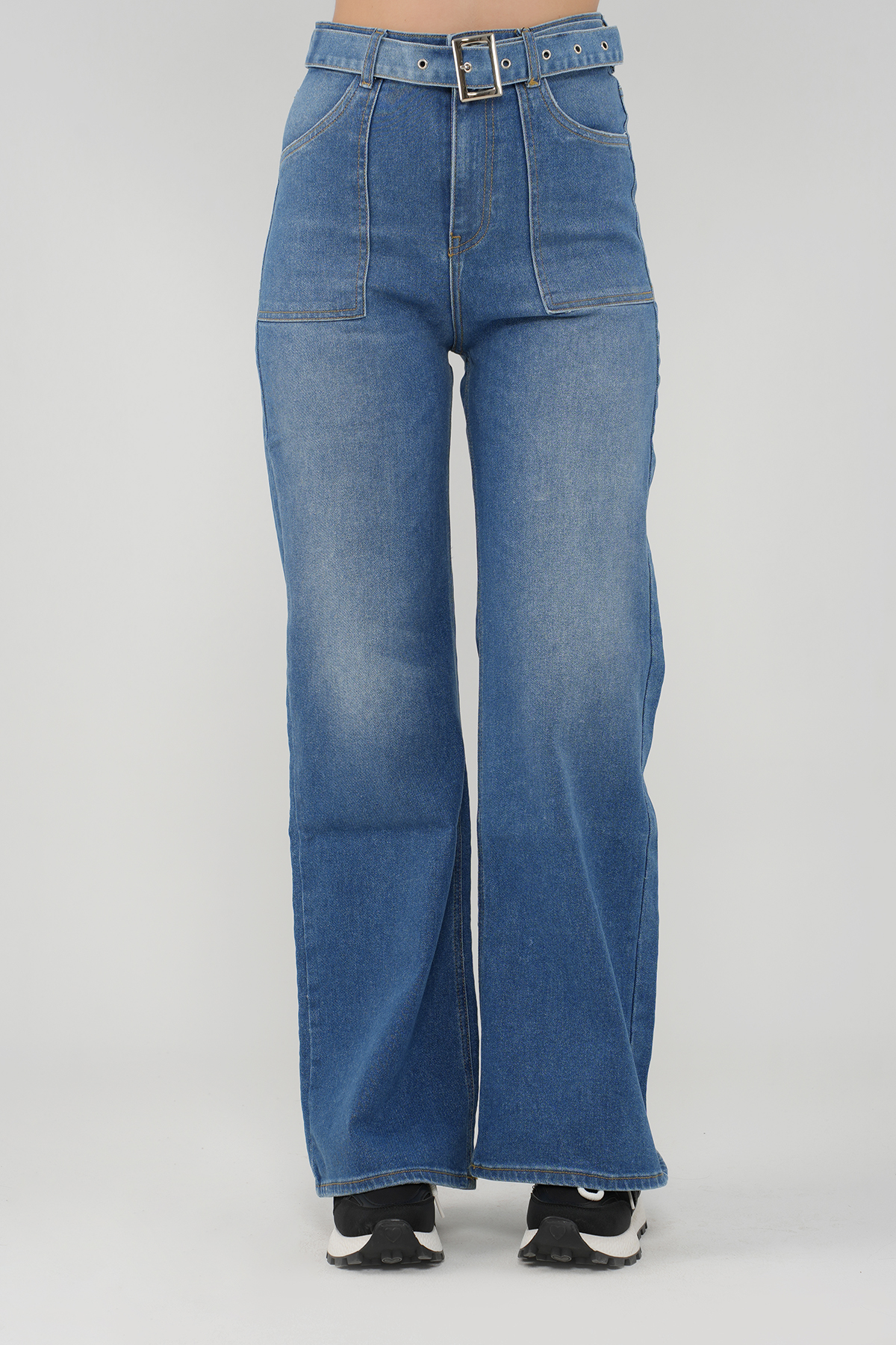 Adoptez un look moderne et décontracté avec ce jean taille haute. Conçu dans une toile denim de qualité, il se distingue par sa coupe ample et ses grandes poches. Sa ceinture assortie à boucle métallique souligne la taille pour une silhouette flatteuse.