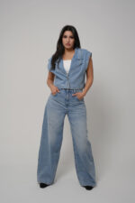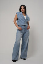 Ce jean large taille haute apporte une allure moderne et affirmée. Sa coupe ample structure la silhouette tout en offrant une grande liberté de mouvement. Réalisé dans un denim bleu clair légèrement délavé, il incarne parfaitement le style casual chic, facile à porter au quotidien.