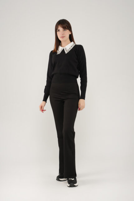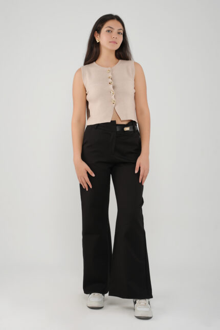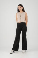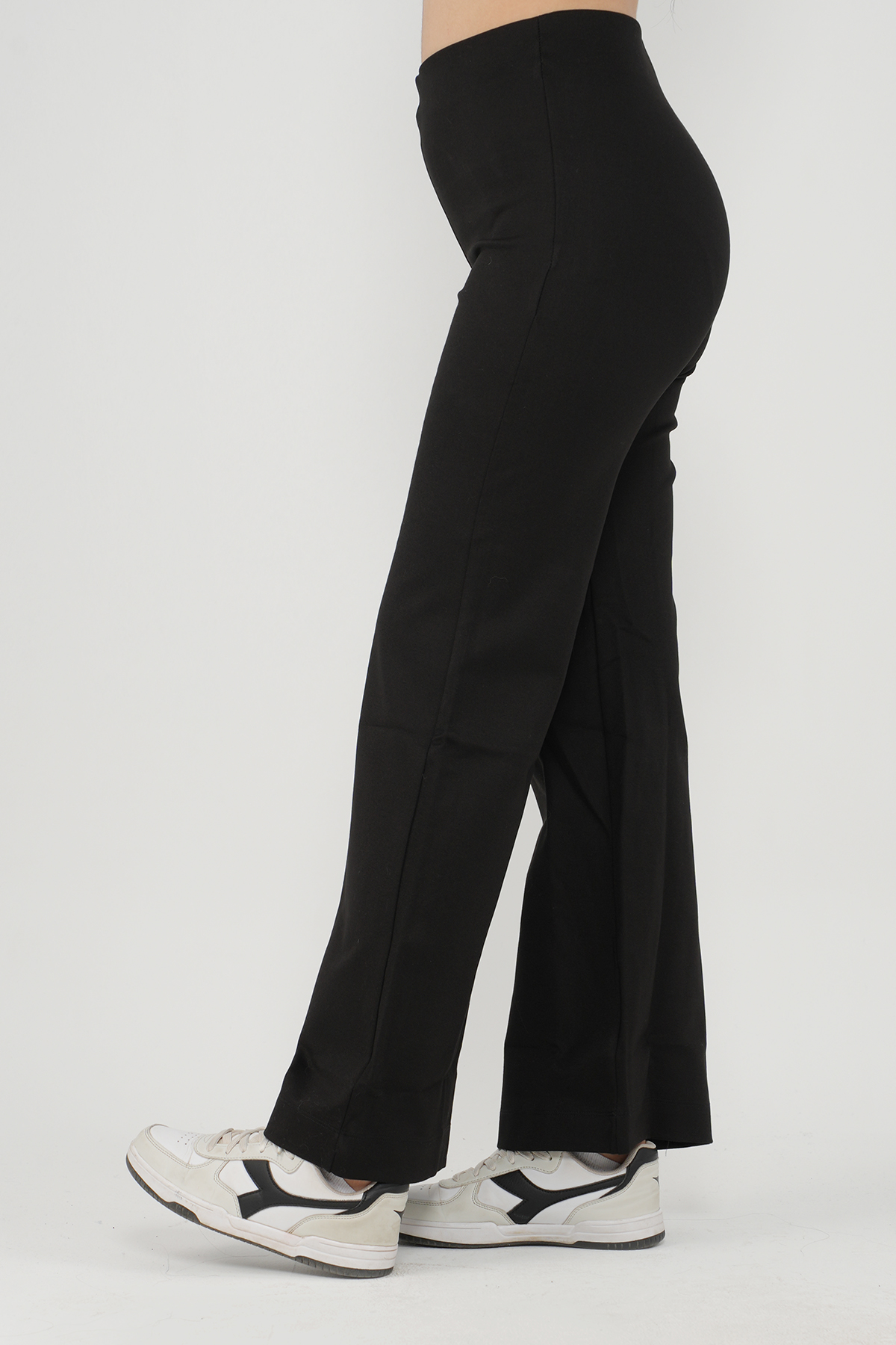 Adoptez un look à la fois chic et décontracté avec ce legging noir à coupe évasée. Conçu dans un tissu extensible et doux, il épouse parfaitement vos formes tout en offrant une grande liberté de mouvement. Sa taille haute met en valeur la silhouette et assure un maintien optimal. Le bas légèrement évasé ajoute une touche moderne et tendance, idéale pour une tenue casual ou plus habillée.