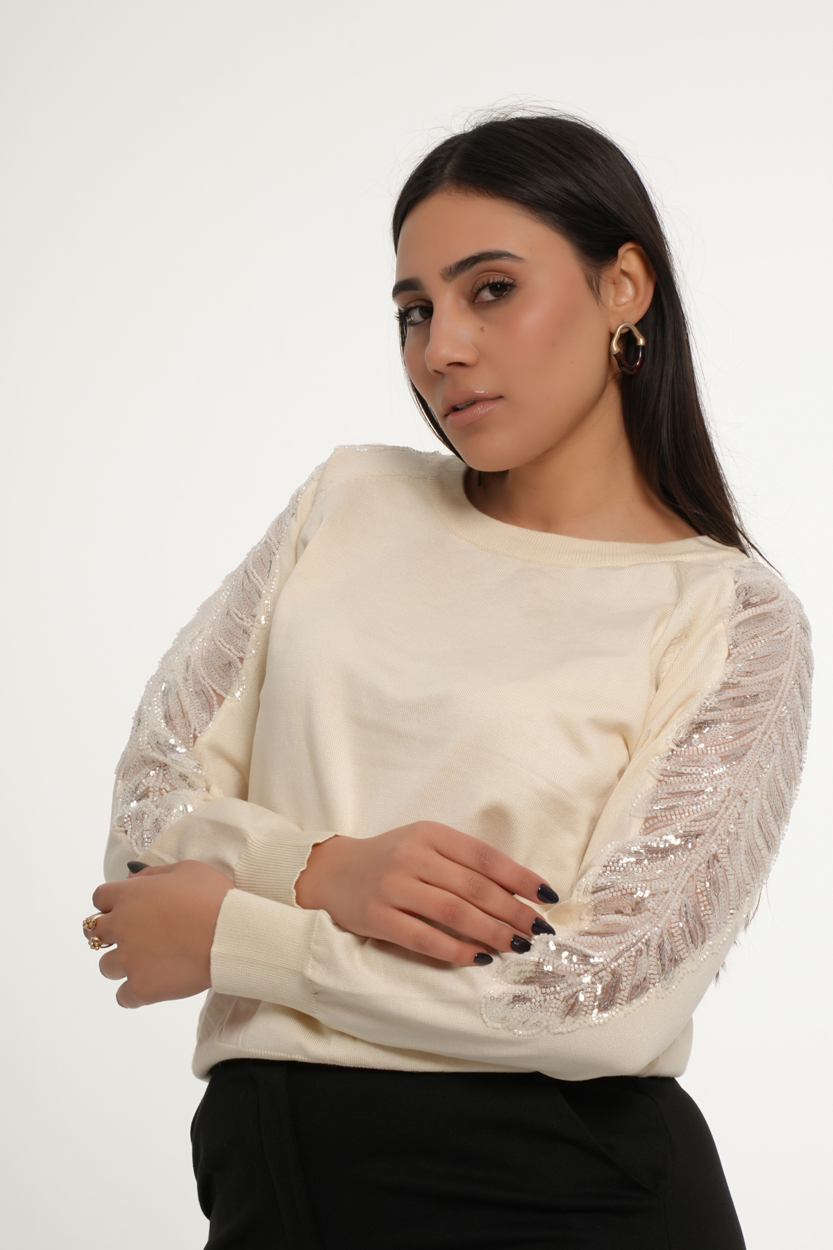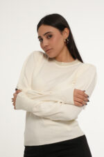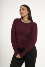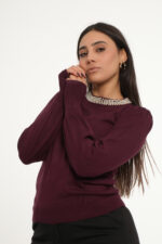 Affirmez votre style avec une touche de douceur avec ce pull à col en perles.