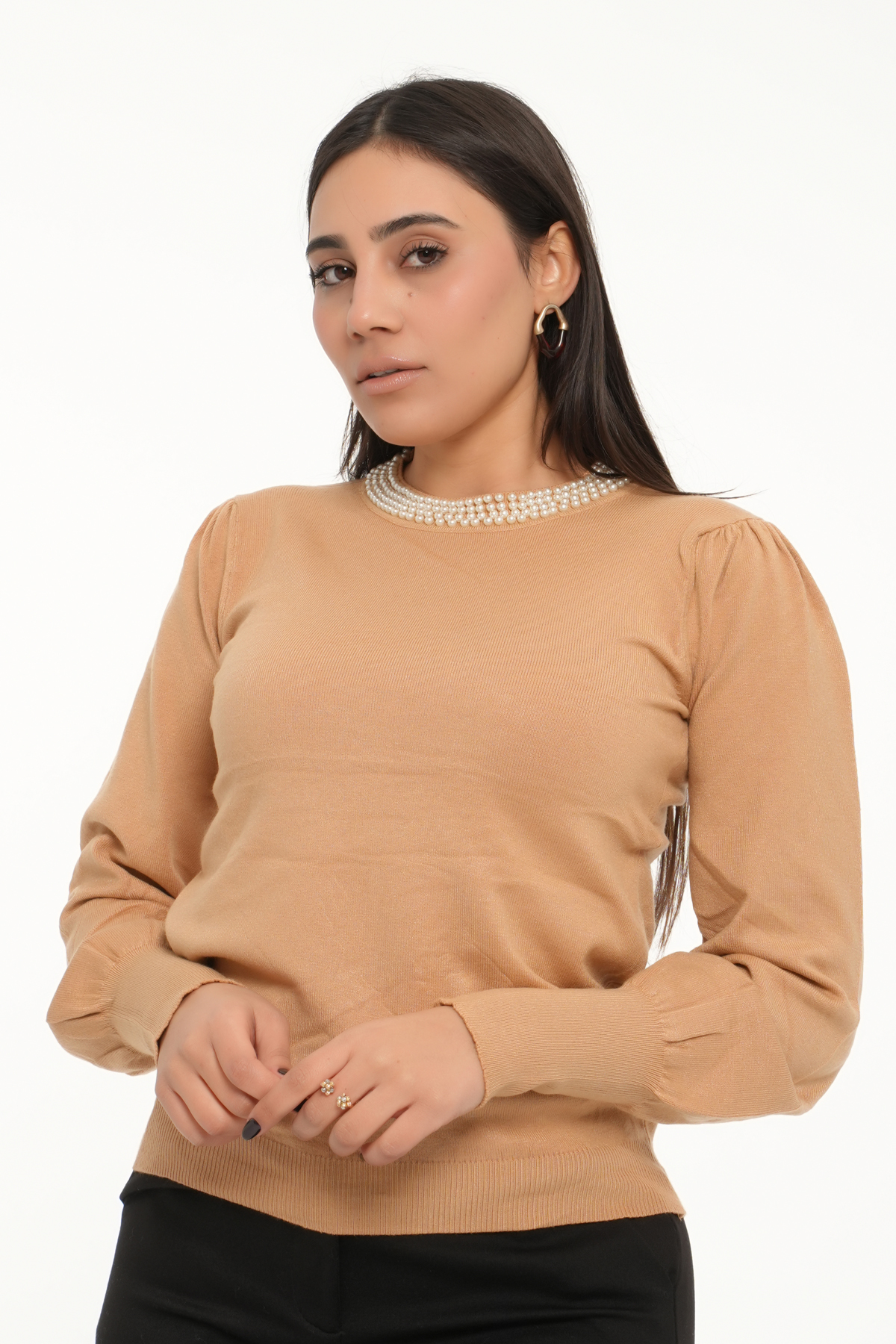 Apportez une touche de féminité et de confort à votre quotidien avec notre Pull à col en perles.