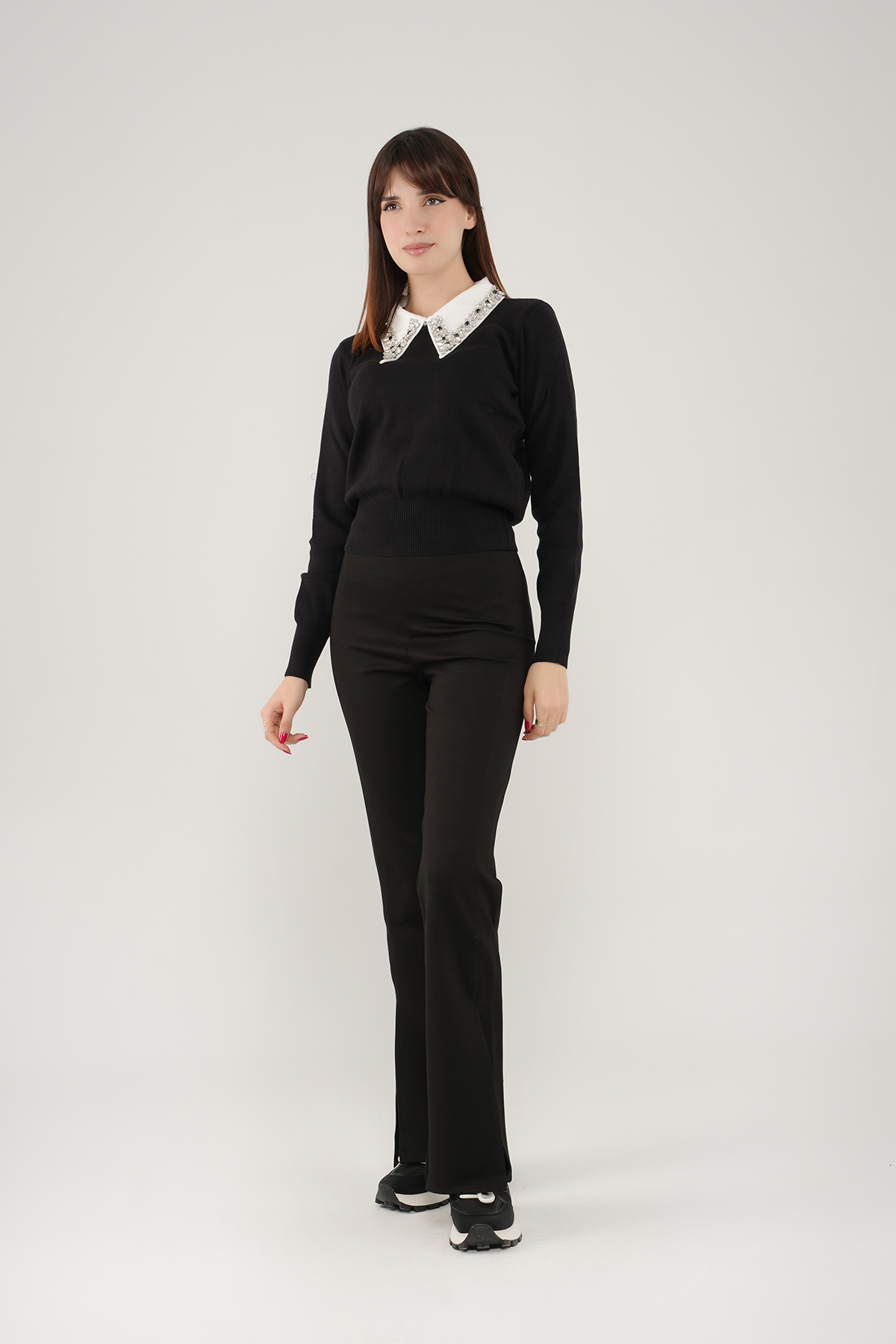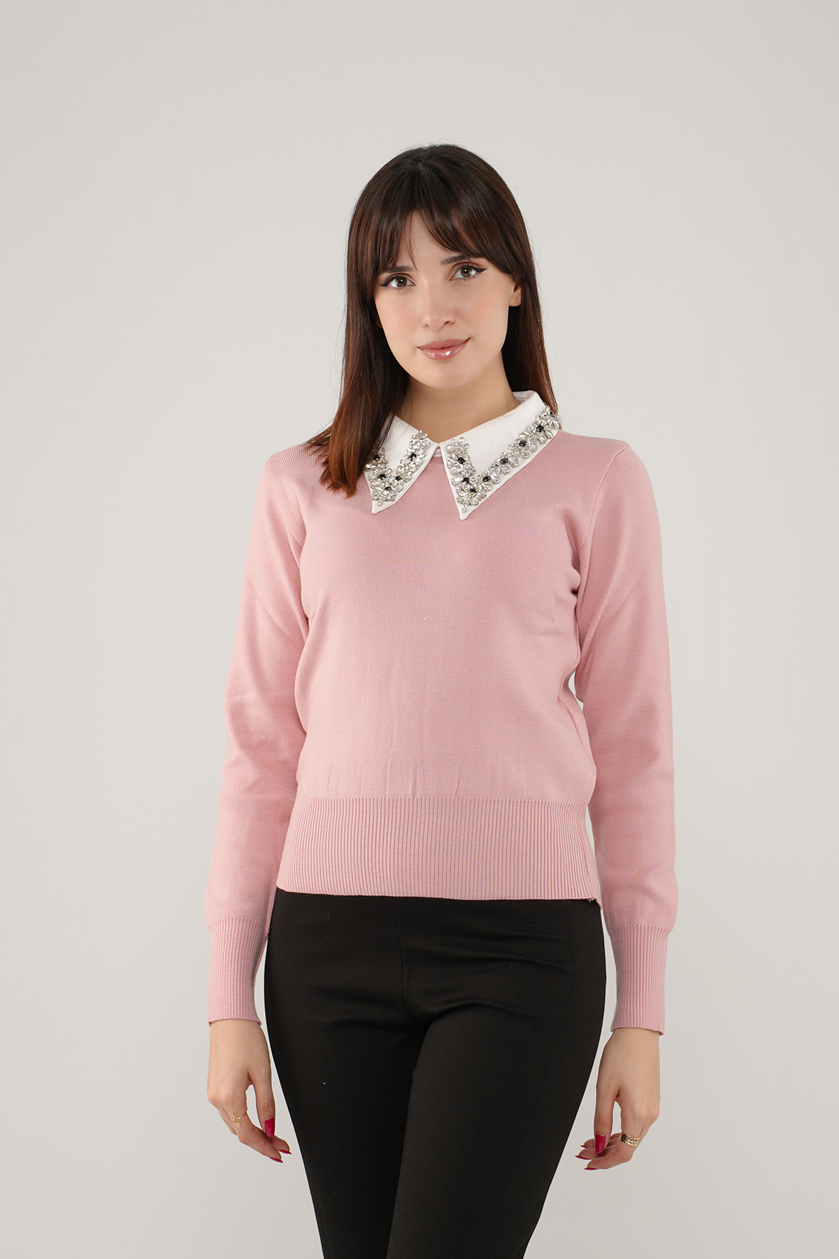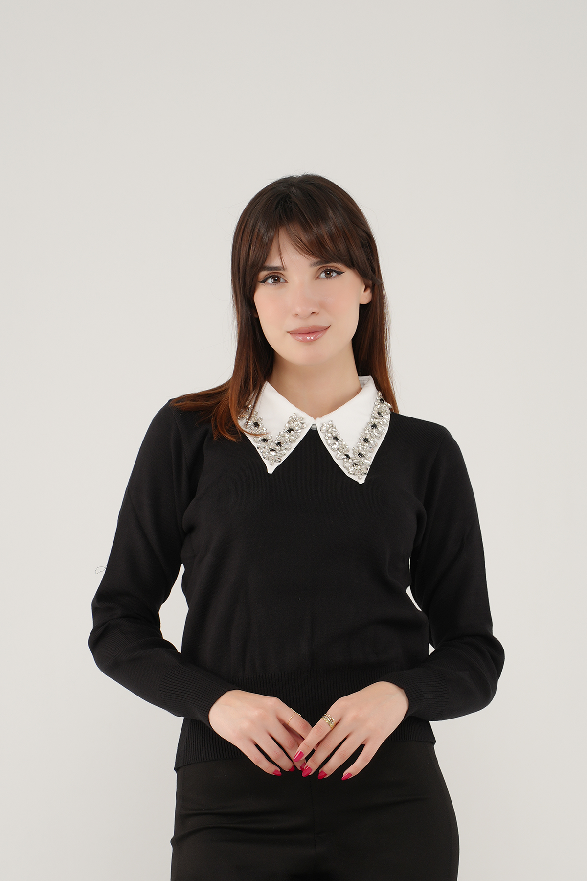Apportez une touche de féminité et de confort à votre quotidien avec notre Pull à col orné de strass.