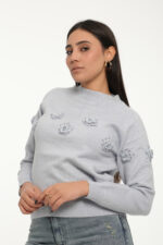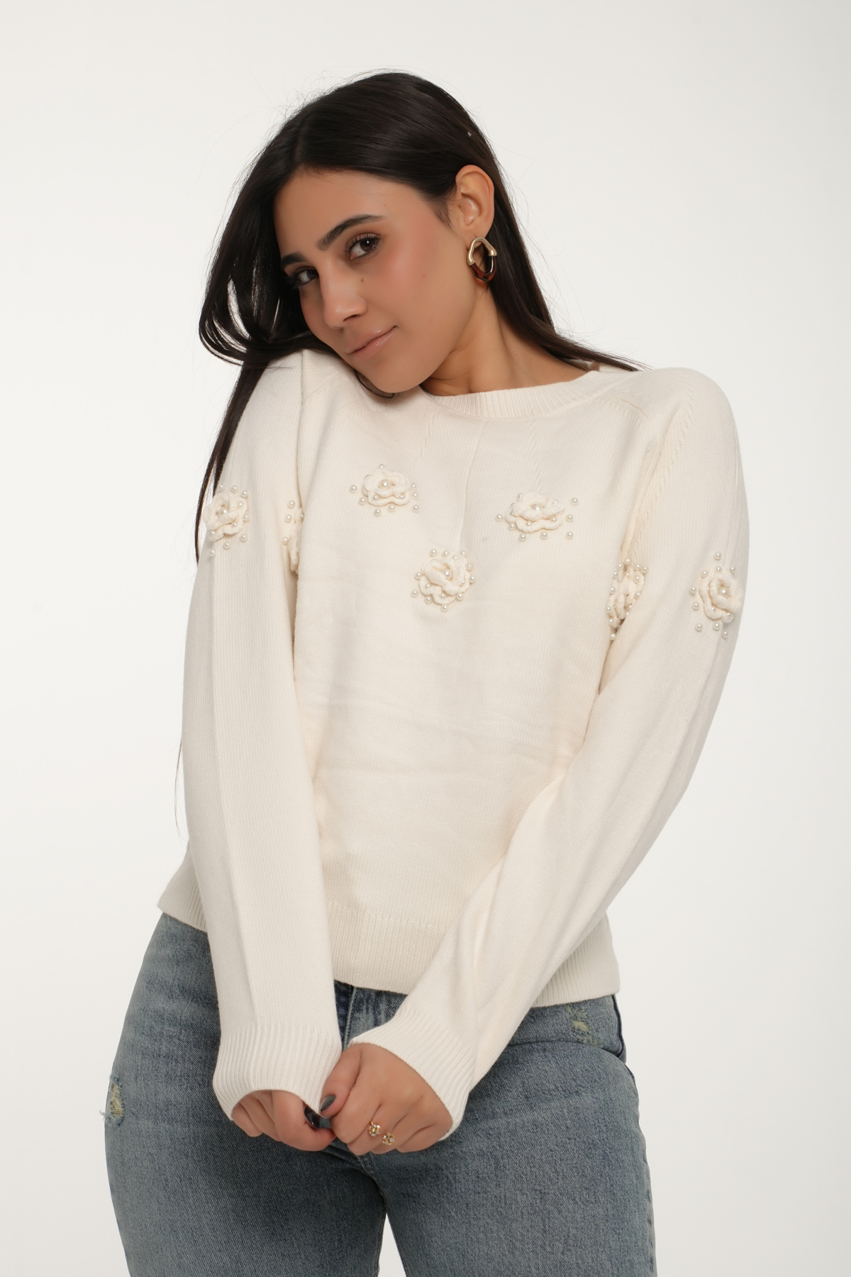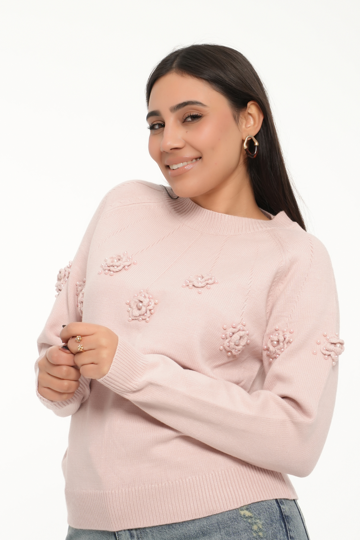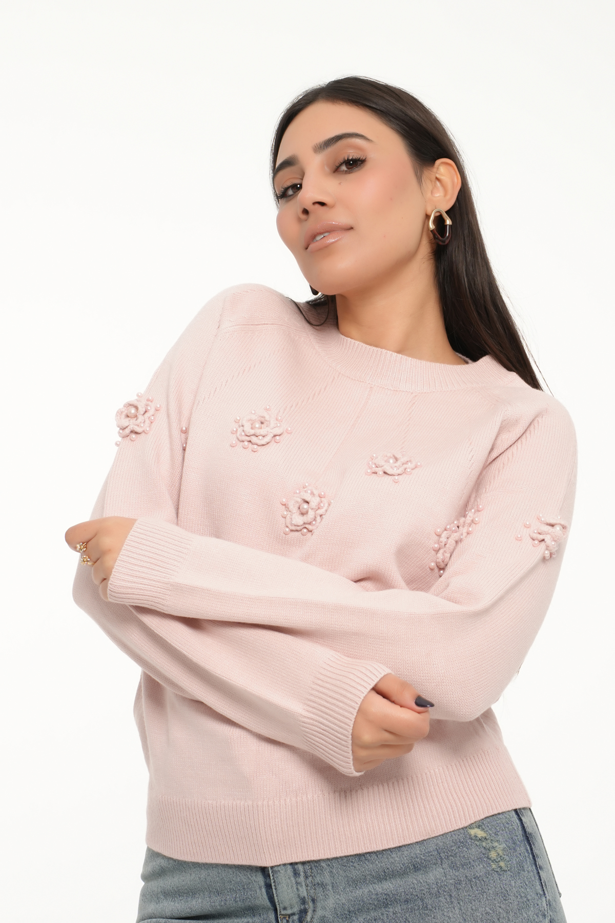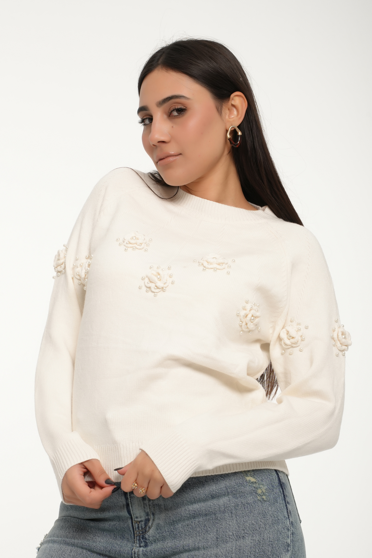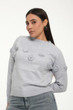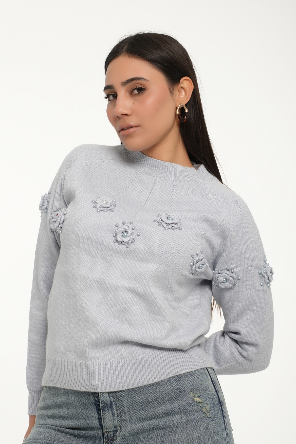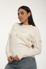 Apportez une touche de douceur et d’élégance à votre look avec notre pull à fleurs perlées.