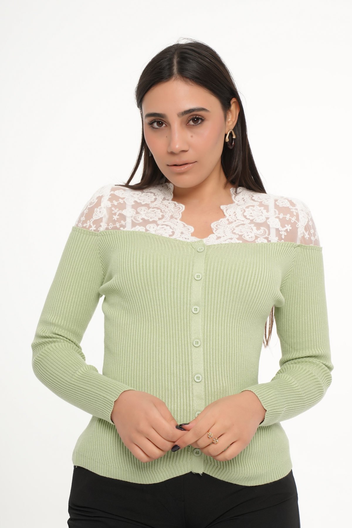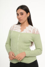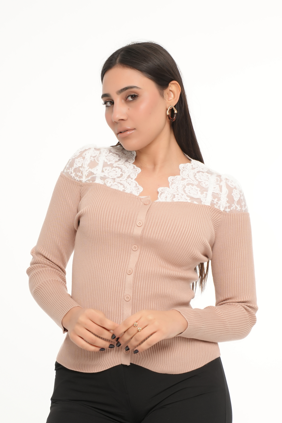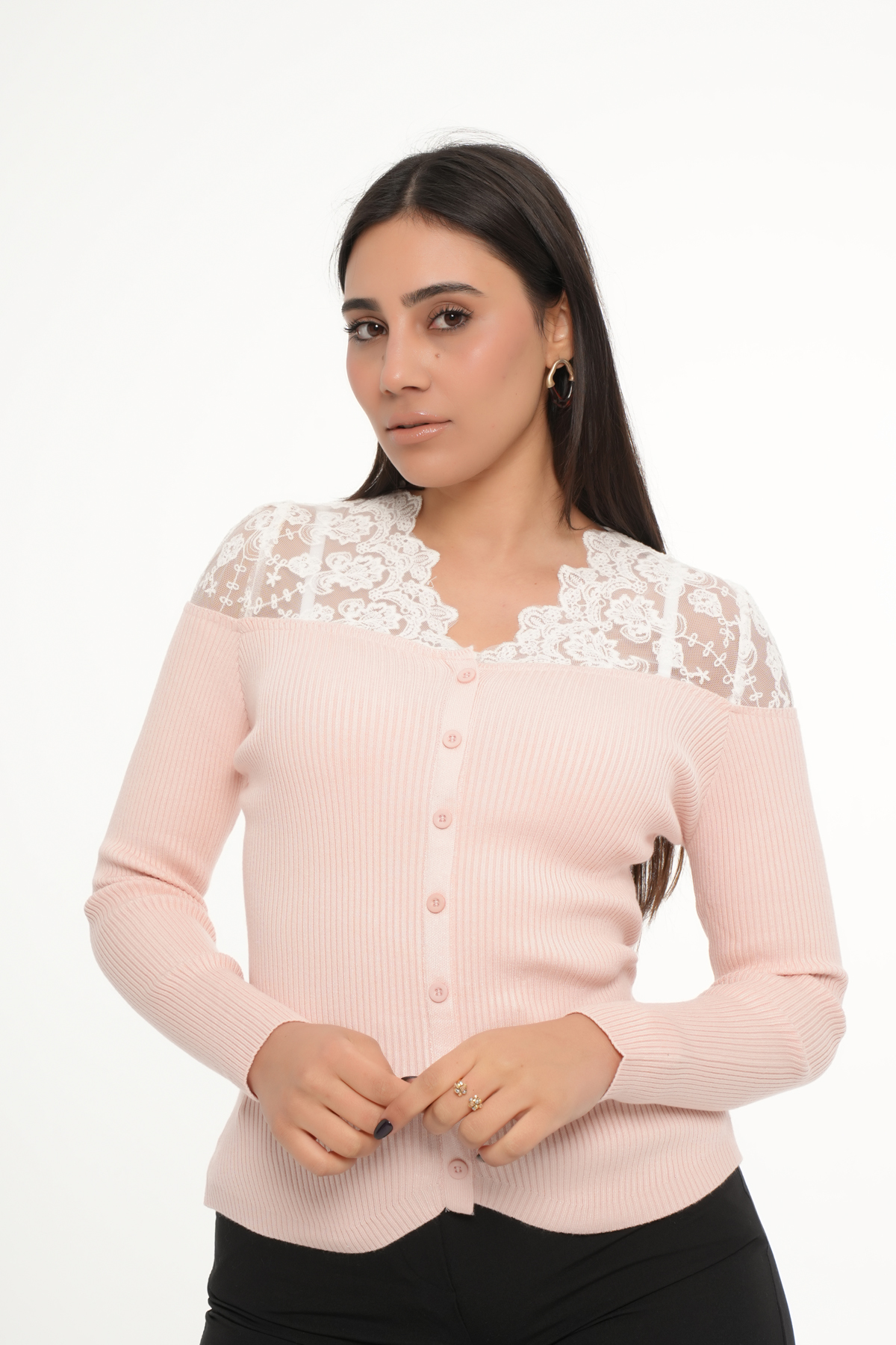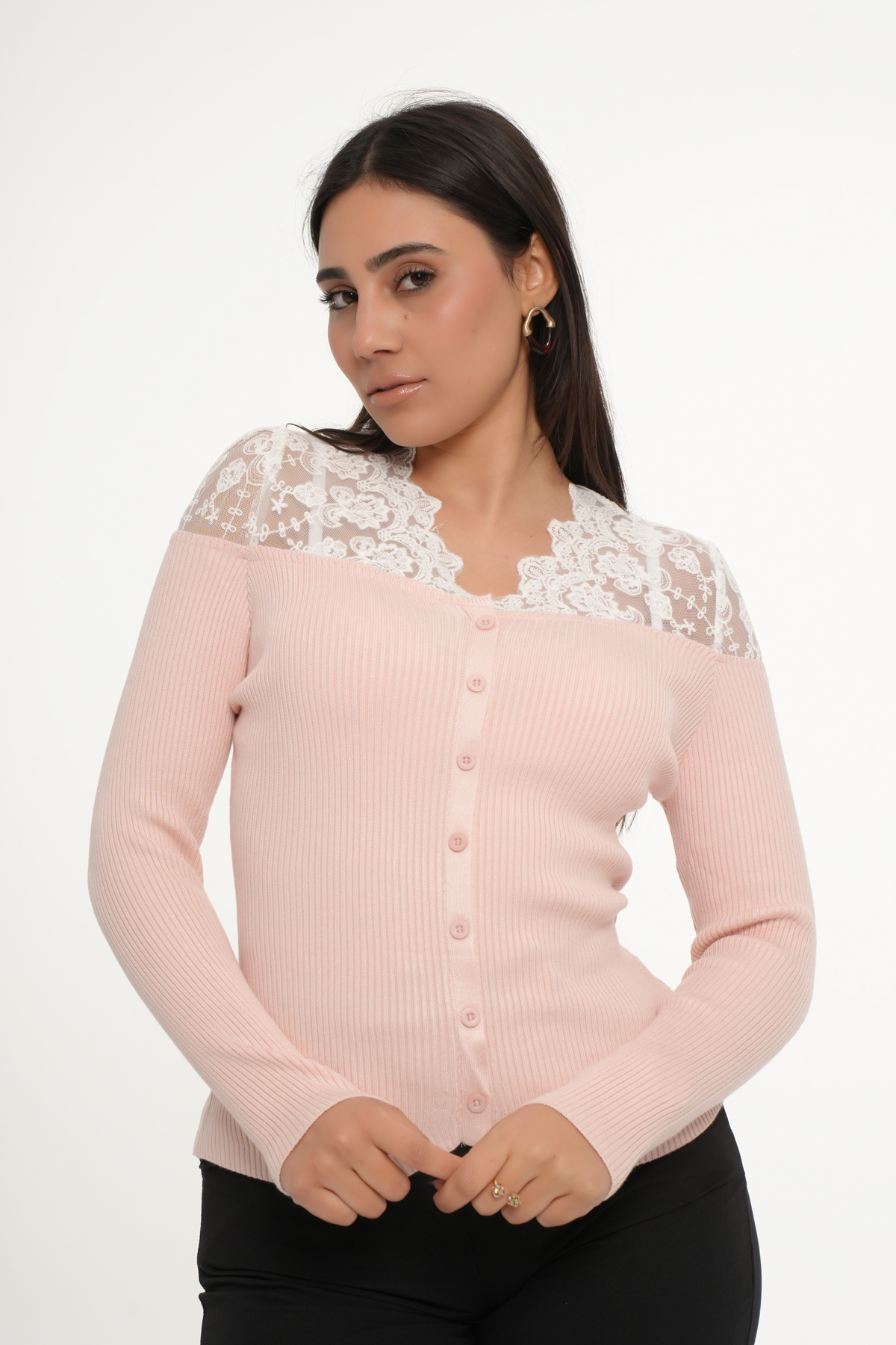 Apportez une touche de féminité et de confort à votre quotidien avec notre Pull avec détail en dentelle.