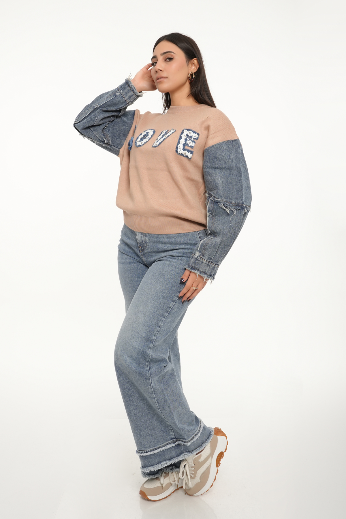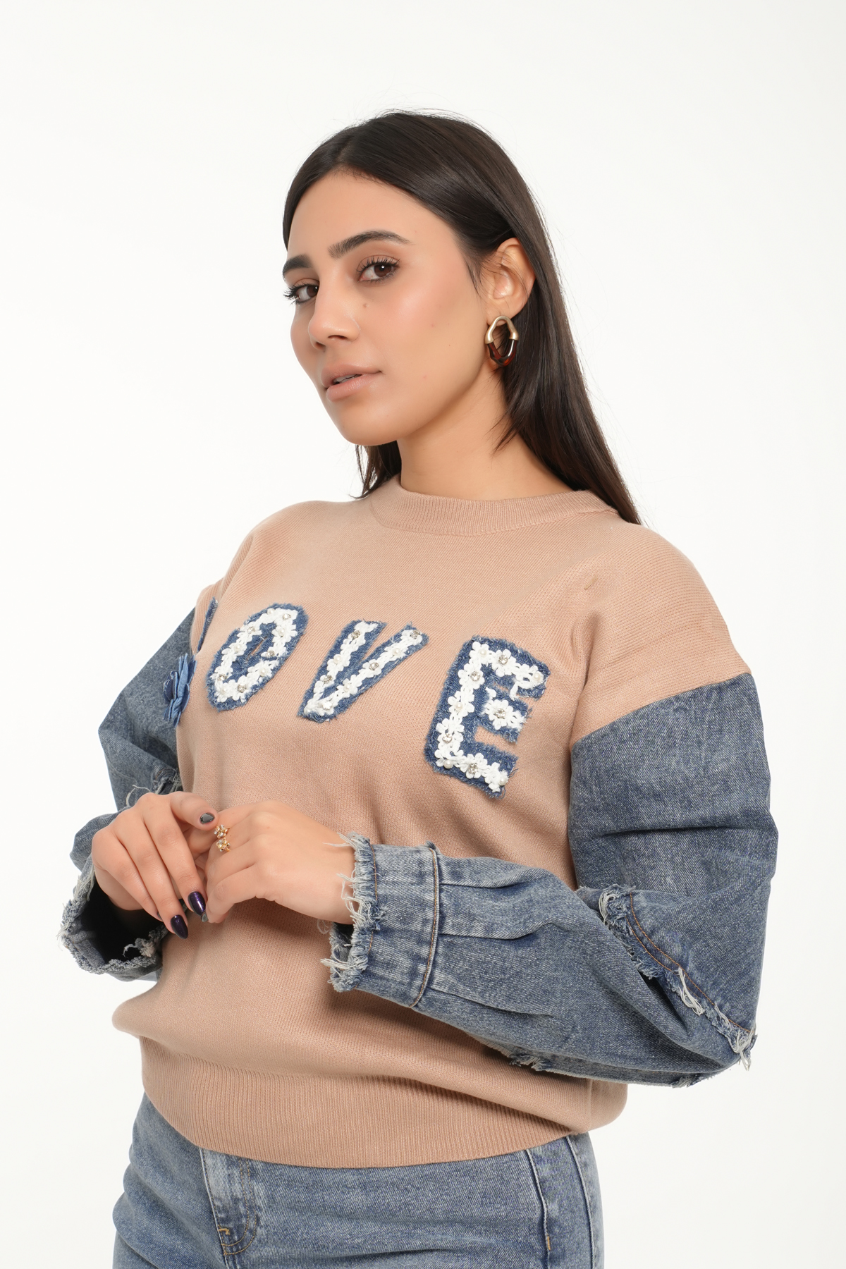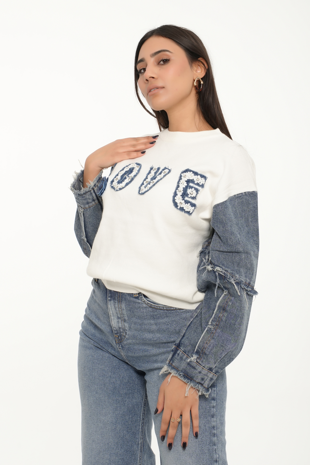 - Détails: mot “LOVE” brodé avec contours en denim