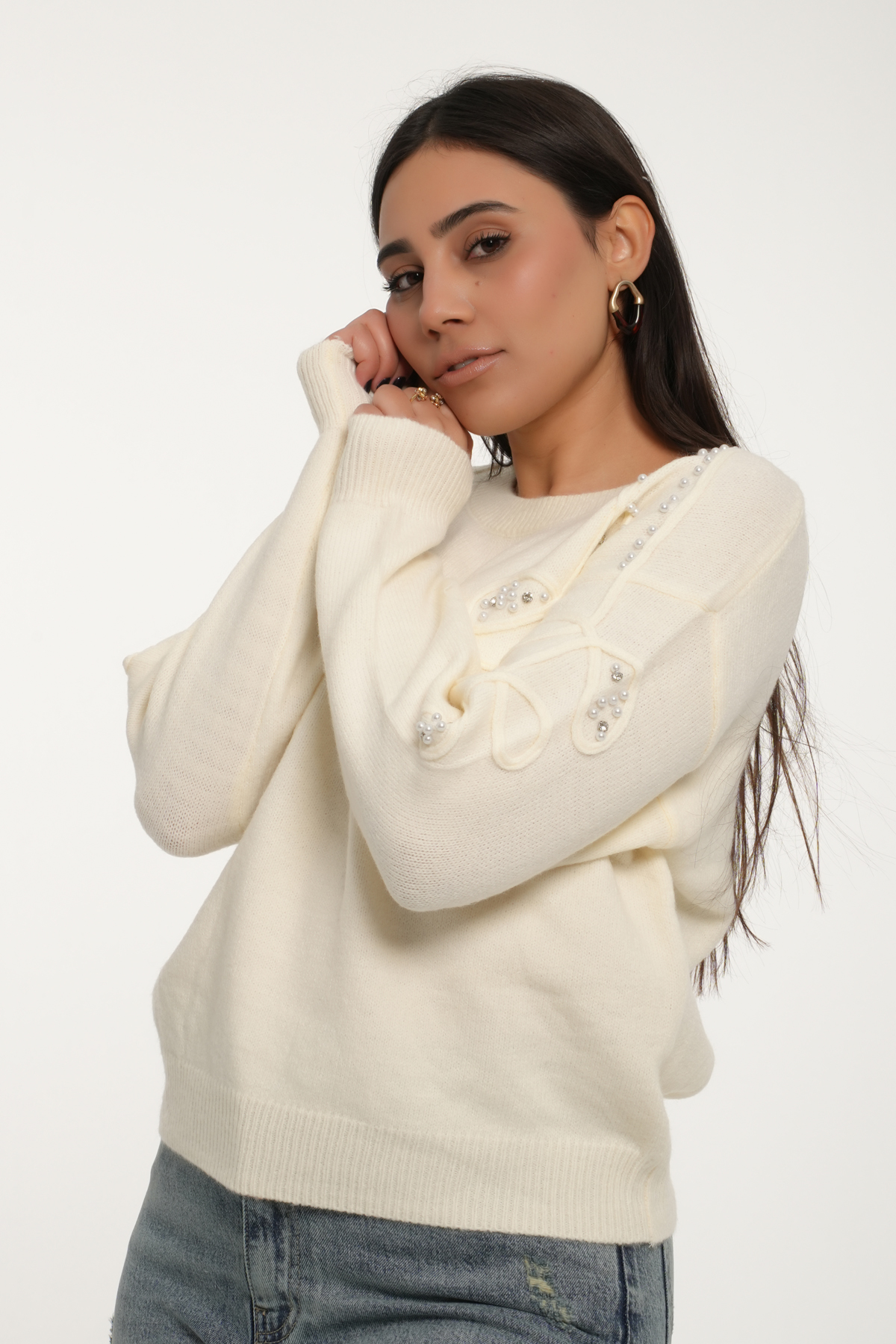 Apportez une touche d’élégance et de délicatesse à votre garde-robe avec ce pull raffiné.