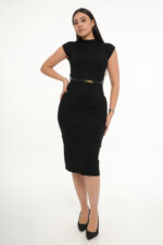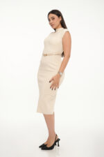 Optez pour une allure élégante et sophistiquée avec cette robe midi moulante.