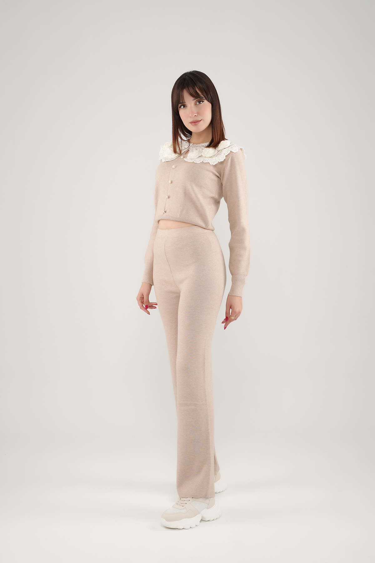 Accueil Ensemble Ensemble d'hiver Set avec col en dentelle