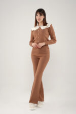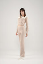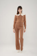 Apportez une touche d’élégance rétro à votre garde-robe avec cet ensemble en maille douce, idéal pour un look à la fois chic et confortable.