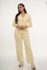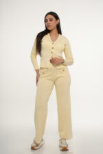 Apportez une touche d’élégance rétro à votre garde-robe avec cet ensemble en maille douce, idéal pour un look à la fois chic et confortable.