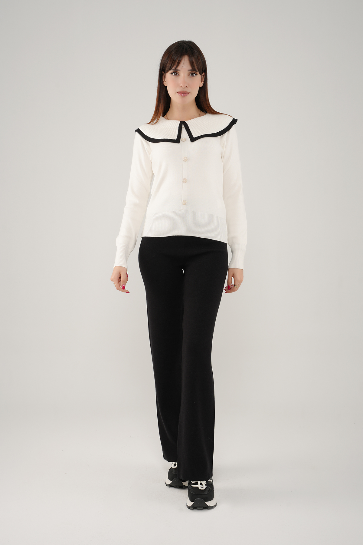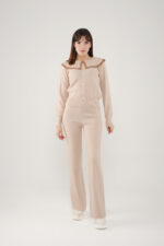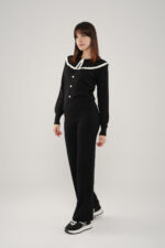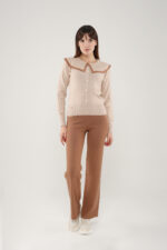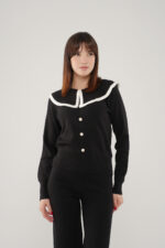• Le haut à manches longues est sublimé par un col effet plissé orné d’un liseré contrasté d’un autre couleur, qui apporte une touche d’originalité et de raffinement. Les boutons argent à l’avant ajoutent une finition délicate et féminine.