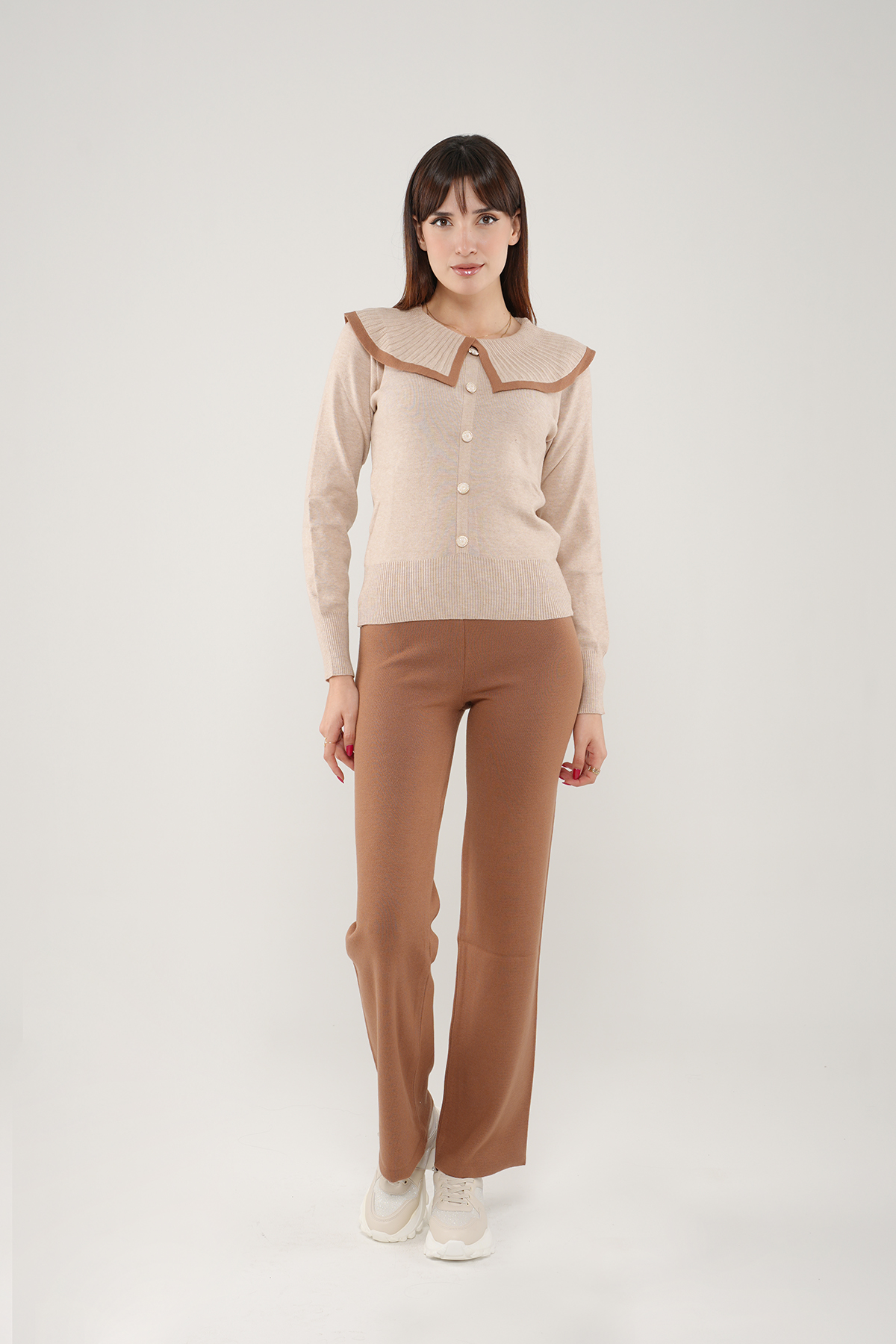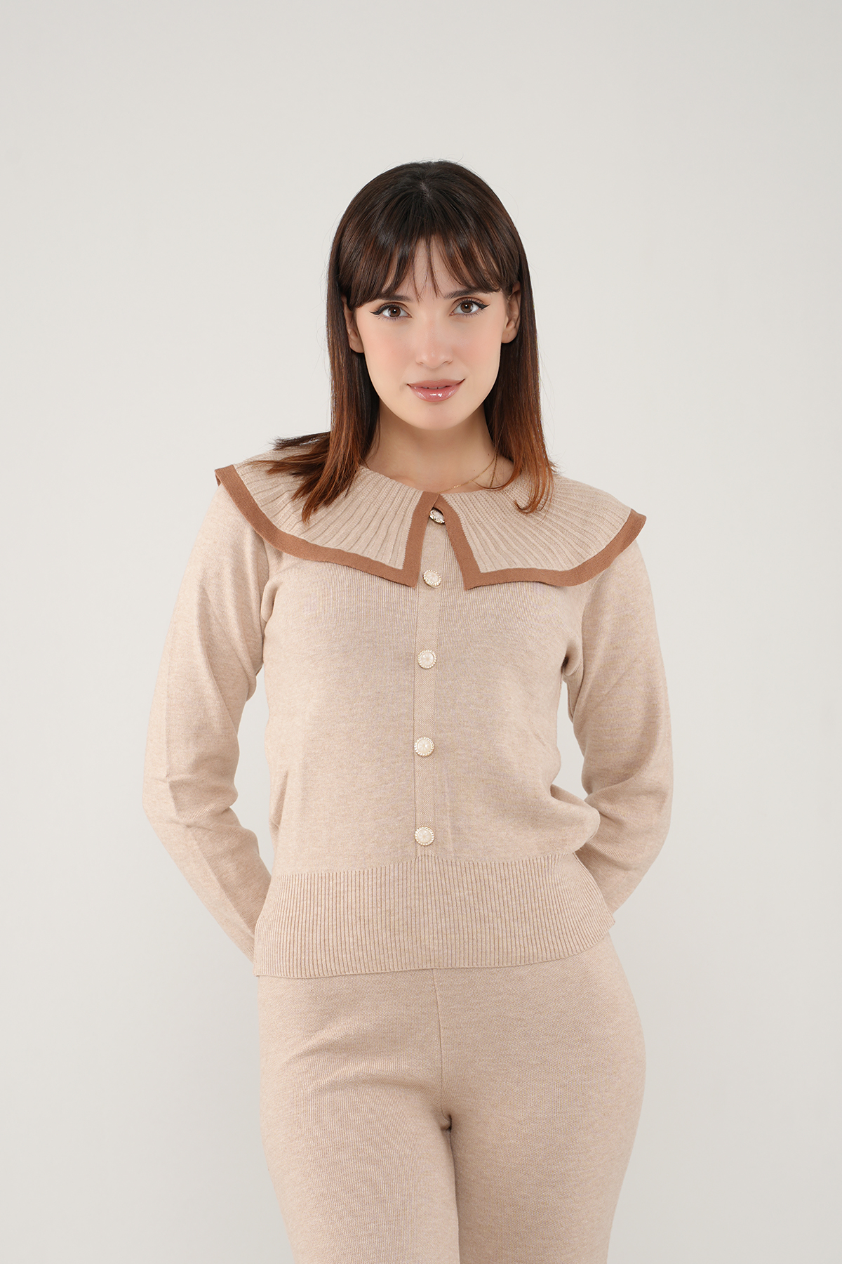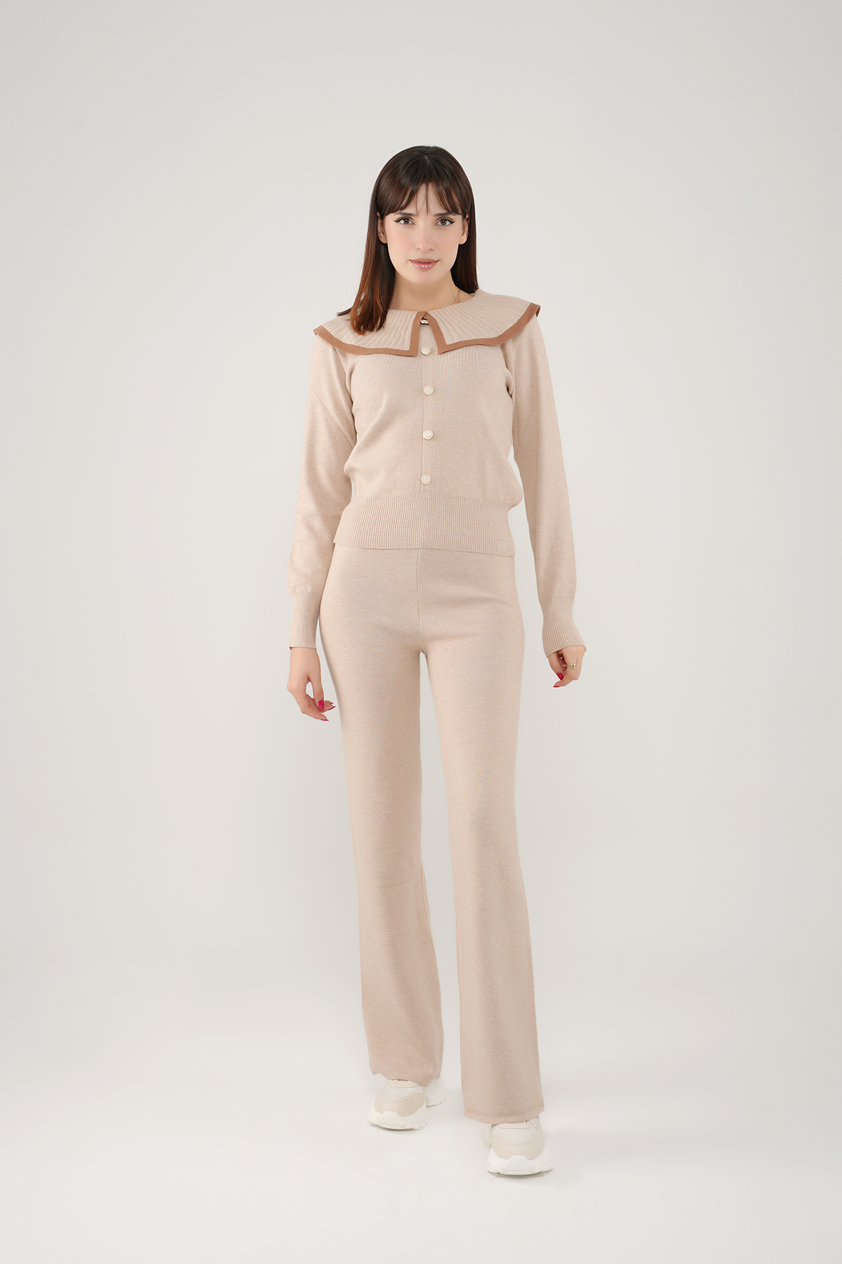 Adoptez un look à la fois élégant et confortable avec cet ensemble en maille.