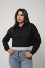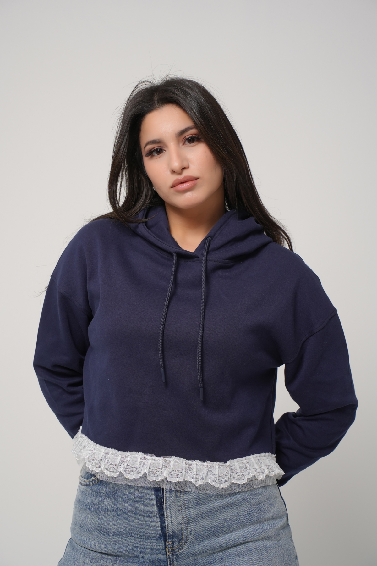 Alliez confort et féminité avec ce sweat à capuche revisité dans un style chic et moderne. Sa coupe décontractée est sublimée par une délicate finition en dentelle blanche au bas du vêtement, apportant une touche élégante et originale à une pièce casual. Confectionné dans une matière douce et agréable à porter, ce sweat est idéal pour un look cosy au quotidien. Facile à associer avec un jean ou un pantalon large, il s’adapte à toutes vos envies.