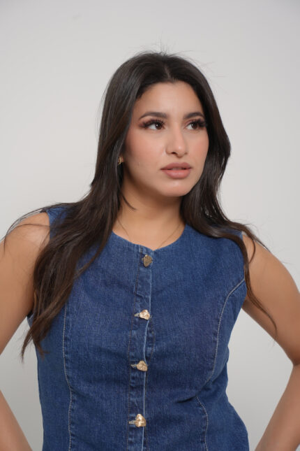 Apportez une touche de féminité et de confort à votre quotidien avec notre Veste sans manches en denim.